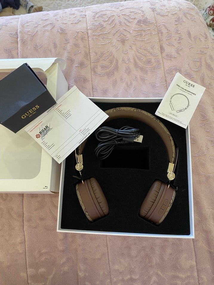Guess kablosuz kahverengi kulaklık, ses, parça ve çağrı kontrolü ile stüdyo kalitesinde ses sunar. Müzik hiç bitmez. Hiç kullanılmadı, ürünü guess mağazasından aldım pembe olanını kullandığımdan bunu satmak istedim