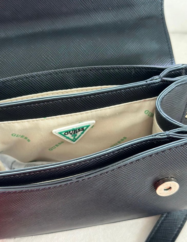 Guess marka, fermuarlı, gri deri kadın çantası. İç kısmı yeşil baskılı kumaşla kaplı, gündelik ve sokak stili için uygun.orjinal yeni