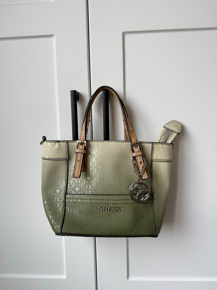 GUESS markalı, baskılı polyester ve tokalı saplara sahip. Ürün, Amerika’dan 2016 yılında alındı. Ancak, pandemi döneminde kolonya ile saplarını sildiğim için deforme olmuştur. Onun haricinde iç astar ve fermuarlar çok iyi durumda, temizdir. Dilerseniz, saplarını değiştirerek uzun yıllar kullanabilirsiniz. Fiyatı makul tutuyorum.