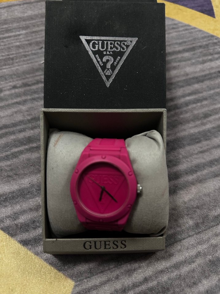 Guess markalı kadın saati, koyu pembe renkte ve kemerli kayışlıdır. Minimalist ve trend görünüme sahiptir. Orijinal kutusunda sunulur. ⌚orijinal üründür hiçbir sorunu yok kullanıma baglı ufak tefek çizikler olabilir kutusu ile gönderilecektir. Koddan kontrol edebilirsiniz.