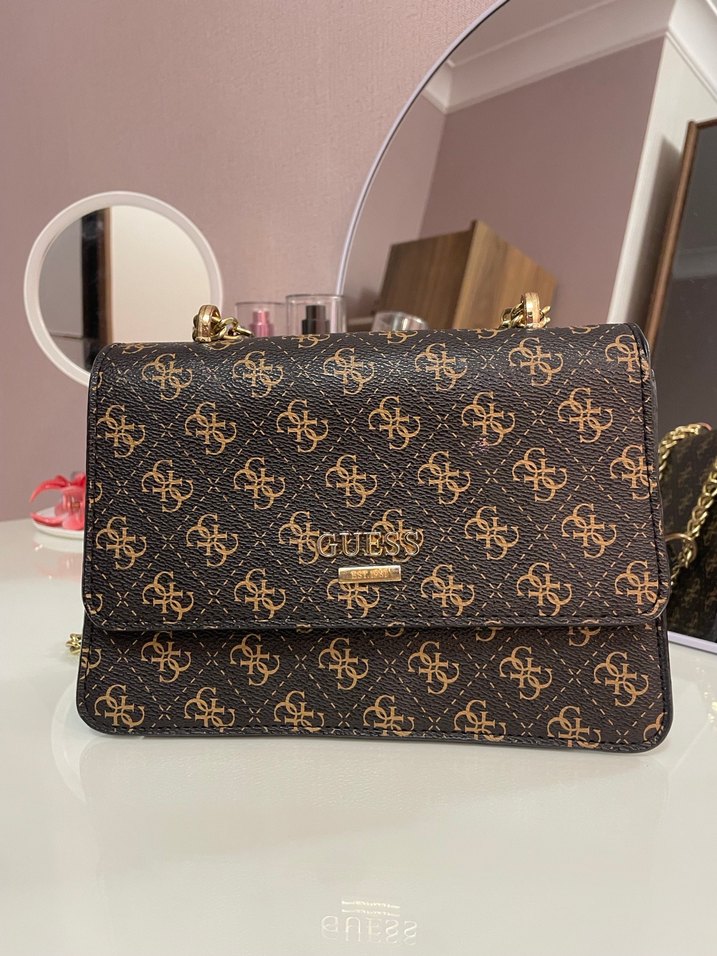 Guess Kahverengi Desenli Kadın Deri Omuz Çantası