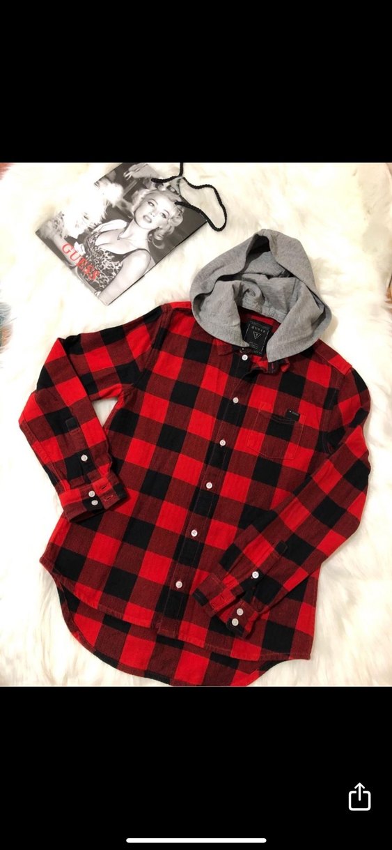 Guess Kapüşonlu Kırmızı Ekose Oduncu Çocuk Gömlek