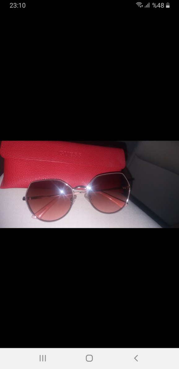 Şeffaf kırmızı çerçeve ve koyu renk camlara sahip kadın güneş gözlüğü, minimal ve sokak modası tarzını birleştirir. Kırmızı kılıf dahildir. Kabı ve orjinal temizlik bezi ile göndereceğim.Harika bir modeldir,camında belli belirsiz kılcal çizikler var.#guess #güneşgözlüğü #gözlük #eyewear #rayban