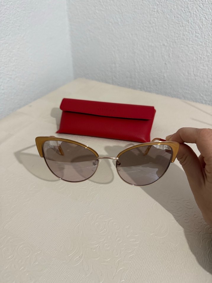 Orijinaldir Şeffaf detaylı, bej renkli kadın güneş gözlüğü, bohem ve retro tarzlara uygun çağdaş tasarımda. Kırmızı kılıf ile birlikte.