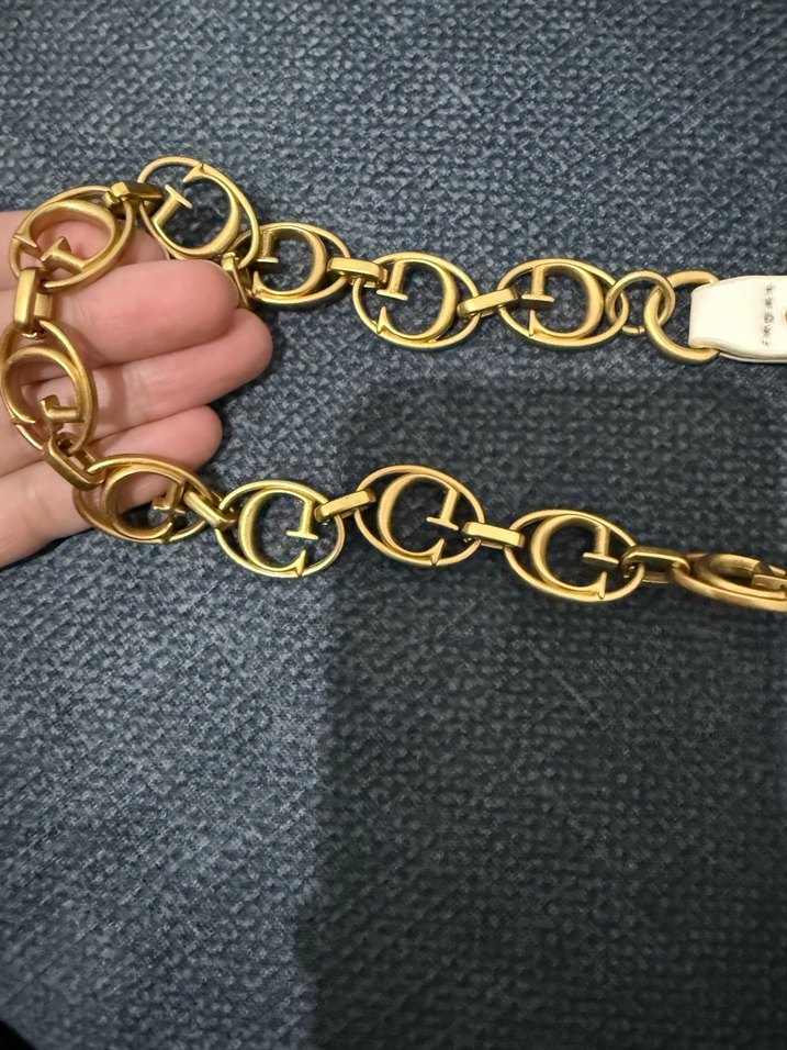 Altın renginde zincir detaylı, gri triko kumaştan yapılmış kadın kemeri, rahat ve çağdaş bir tarz sunar. Moda tutkunları için ideal.