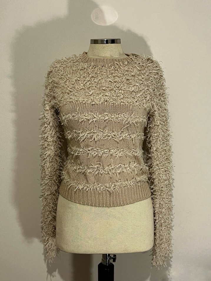 Bej renkli, yuvarlak yaka ve uzun kollu örgü triko kazak. Rahat kesimi ve dokulu tasarımıyla günlük kullanıma uygundur. Guess marka kusursuz kazak, poliamid ve akrilik icerigi son etikette görebilirsiniz