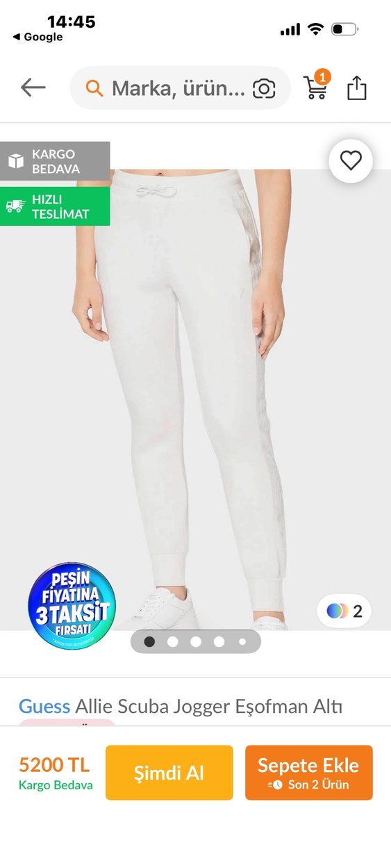 Guess Orjinal L beden beyaz eşofman altı