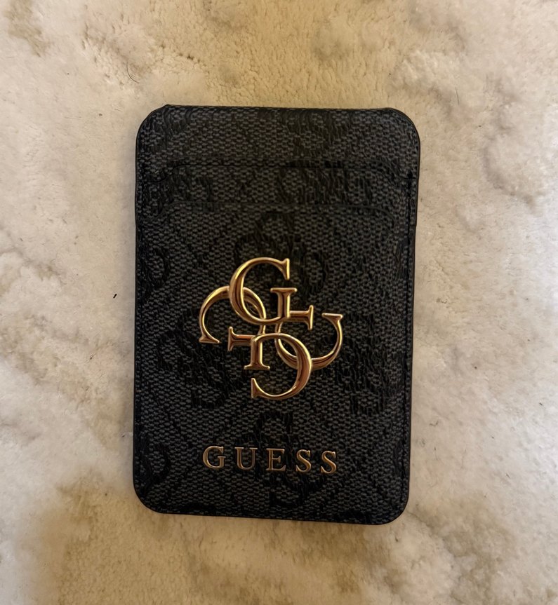 Guess Orjinal Lisanslı PU Deri 4G Desenli Metal Büyük 4G ve Yazı Logolu Standlı Magnetik Kartlık Siyah. Tüm Magsafe özellikli kılıflarda kullanılır. Magsafe özellikli kendiliginden vardır ekstra bi tutucusu yoktur.
