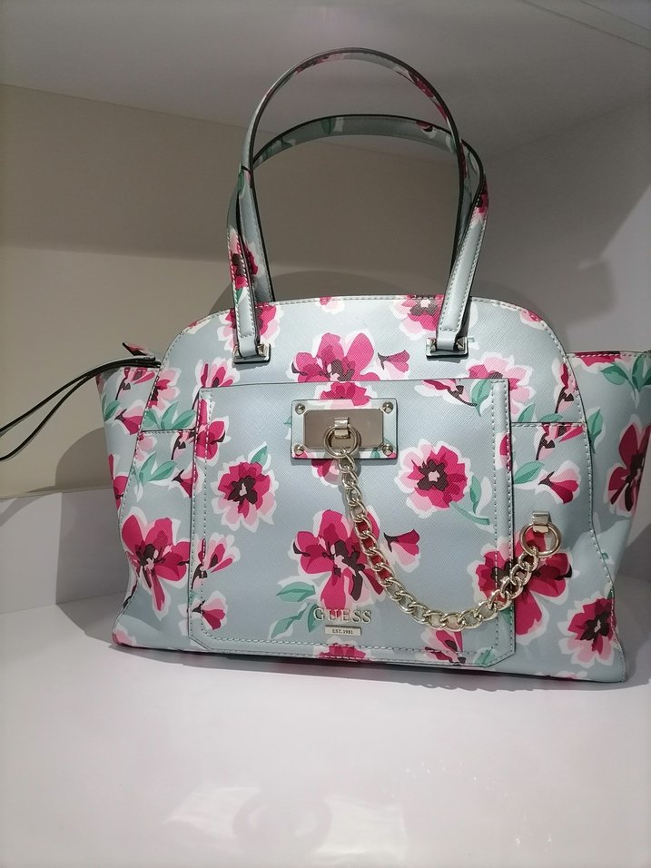 Guess Pembe Çiçek Desenli Mavi Çanta