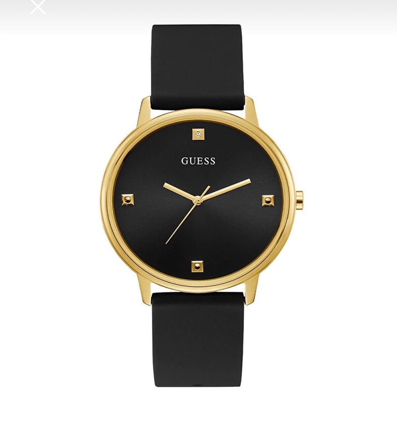 Guess kadın saati, altın renk kasası ve siyah kemerli kayışı ile minimalist tasarıma sahip modern klasik bir modeldir. ⌚bir iki kere takıldı sadece