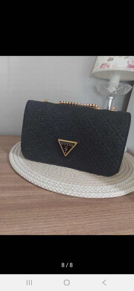 Siyah baskılı desene ve tokalı detaylara sahip Guess kadın çantası, sentetik kumaştan üretilmiştir. Modern klasik tarzı Paris şıklığıyla buluşturur, günlük kullanıma uygundur.