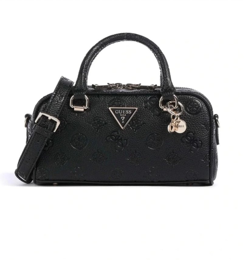 Guess'in siyah yılan desenli deri kadın çantası, fermuarlı tasarımıyla klasik şıklığı ve Paris tarzını yansıtıyor. Günlük kullanıma uygun.