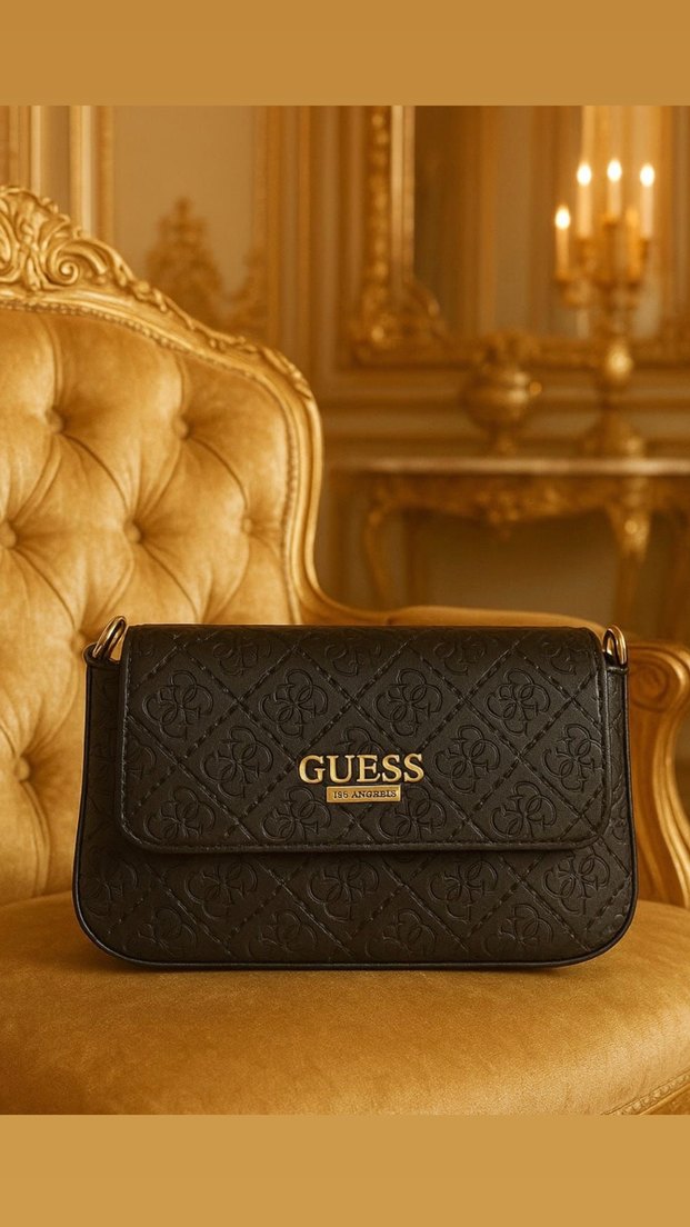 Guess markalı, siyah deri ve nakışlı desene sahip, tokalı kadın çantası. Modern klasik tarzda, günlük kullanıma uygundur. ✨ Asilll