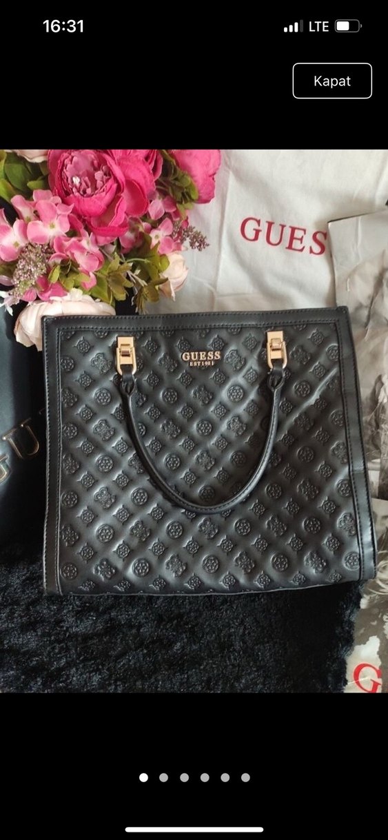 Guess markalı siyah deri çanta, büyük olduğu için kullanamıyorum
