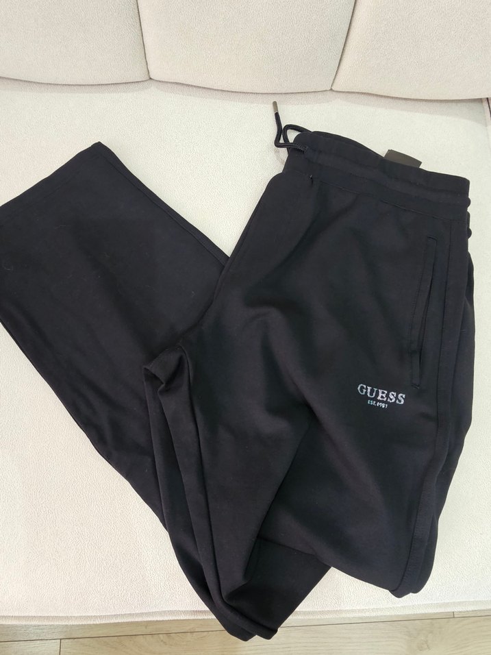 Guess logosu ve fermuarlı cepleri olan, rahat kesim siyah eşofman altı. Yumuşak ve sıcak kumaştan,, dış mekan kullanımı için uygun.