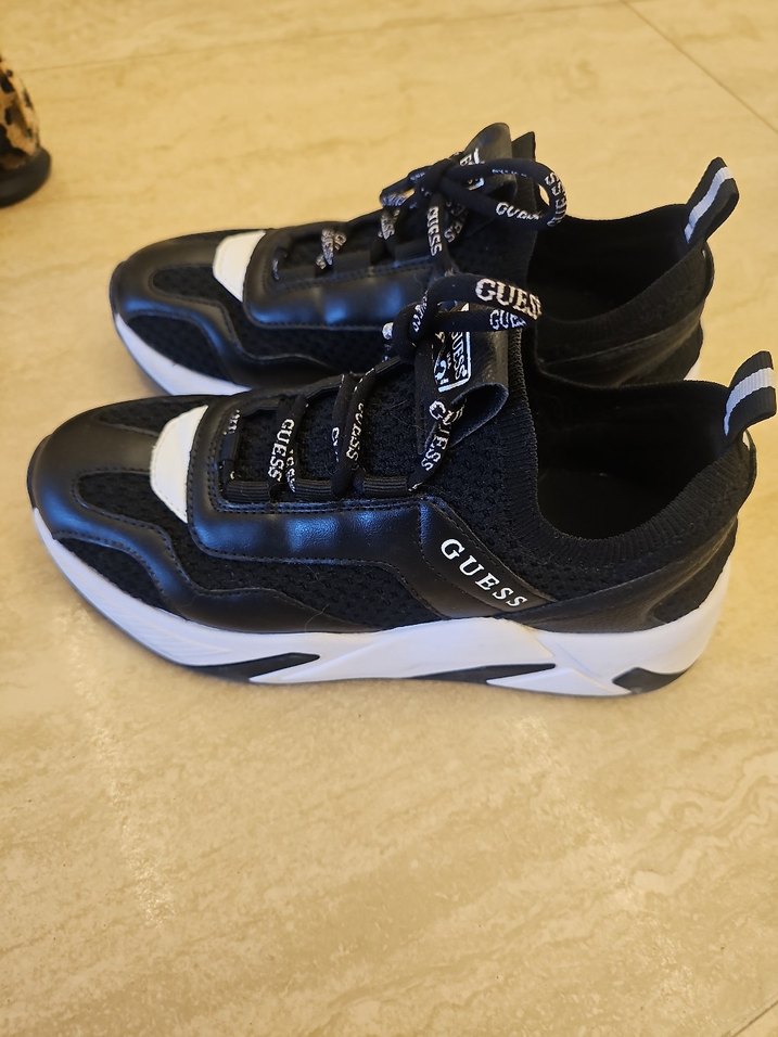 Guess markalı siyah kadın spor ayakkabısı. Spor ve günlük kullanıma uygun, rahat kauçuk tabanlıdır. 1 kere giydim. Sıfırdan farksız