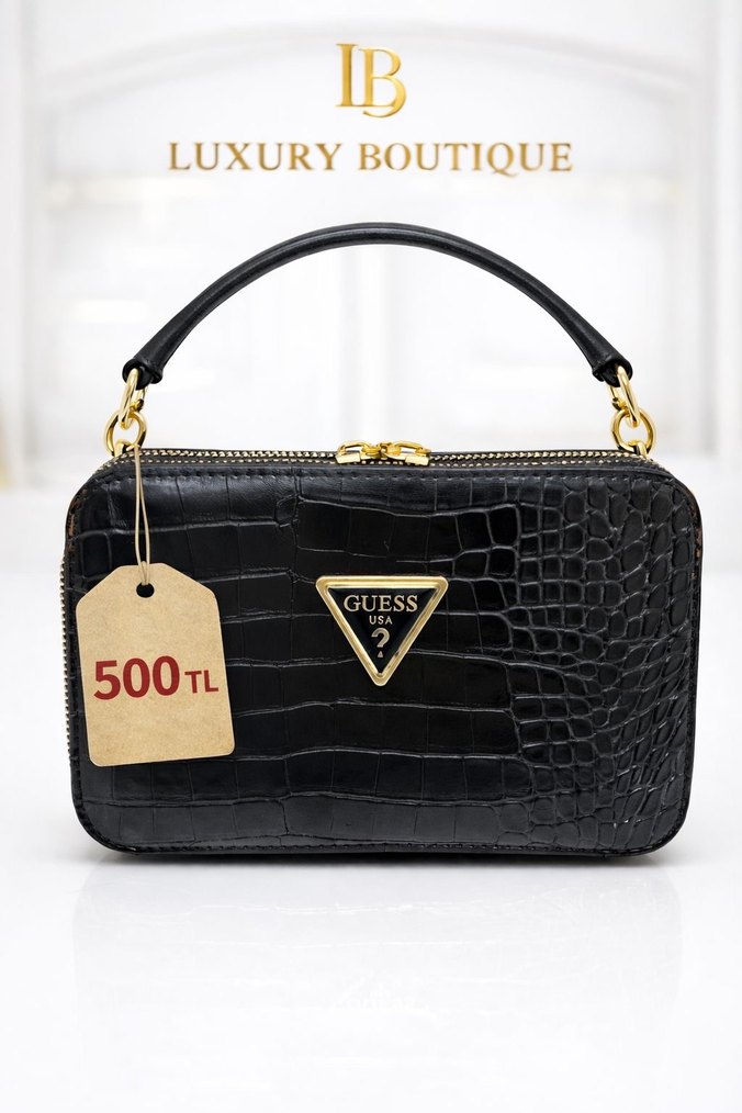 Guess Siyah Parlak Yılan Derisi Desenli Kadın Çanta
