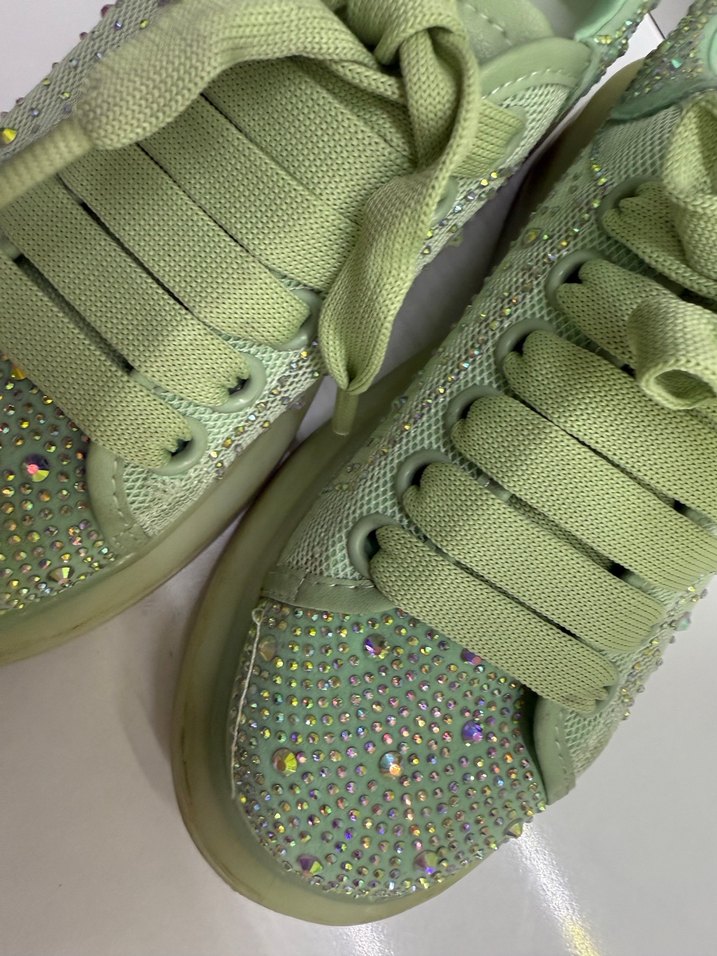 Işıltılı payet ve taşlı platform topuklu yeşil kadın spor ayakkabıs