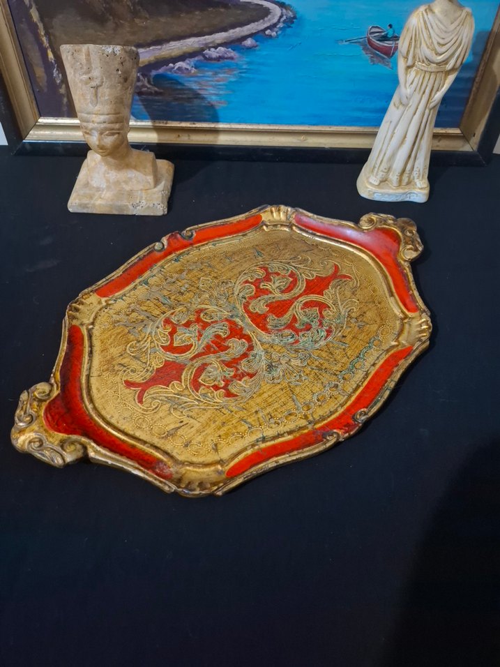 Fransız damgalı gül ağacı tepsi,bazı yaşanmışlık izleri mevcut,çatlak kırık yok,