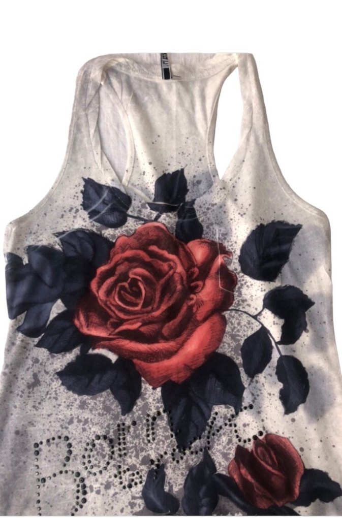 Gül Baskılı Taşlı Tişört
