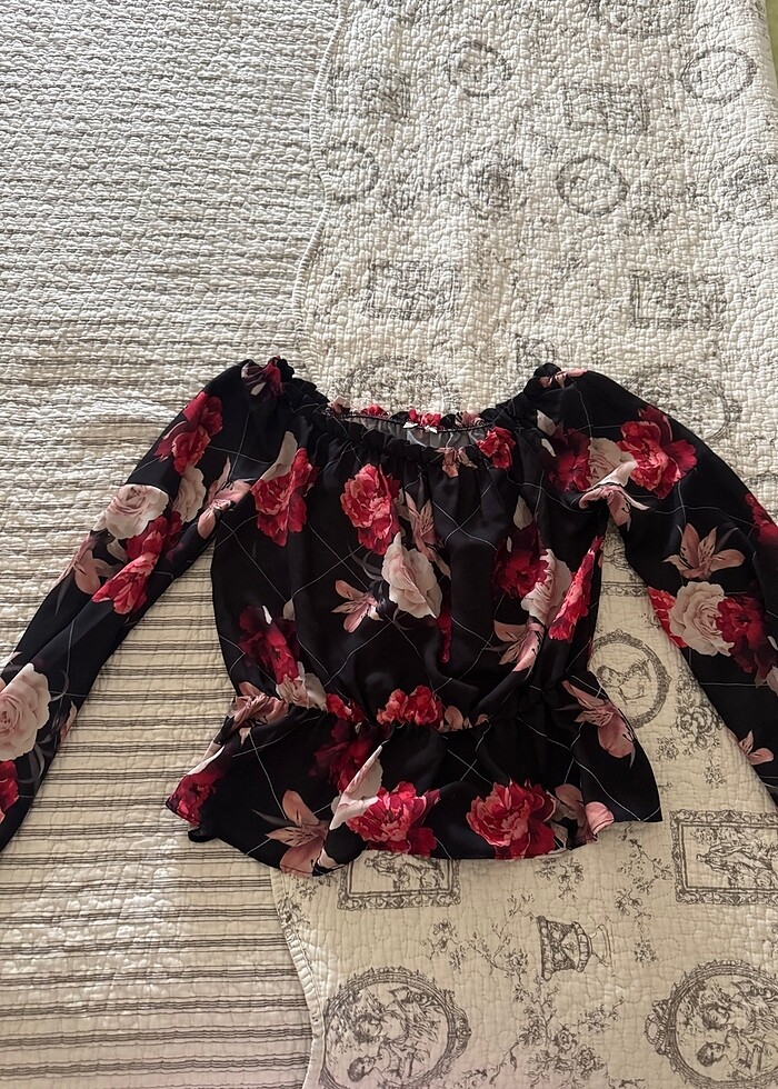 Gül Desenli Şifon Bluz S Uzun Kollu