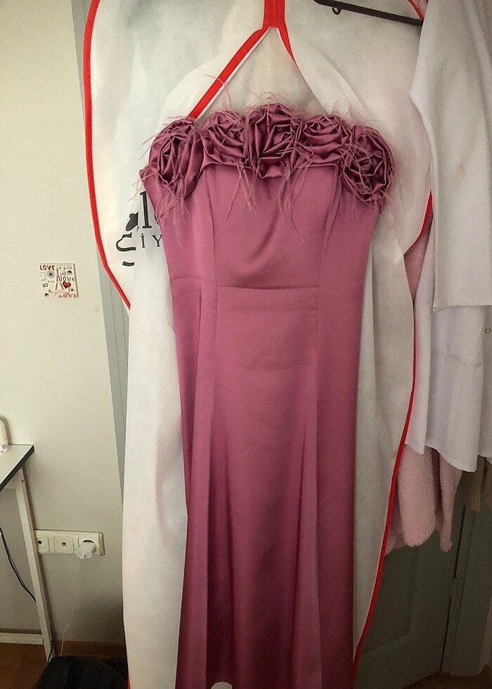 1 DEFA NİŞAN DAVETİNDE KULLANILDI. SORUNSUZDUR. DİZ KAPAĞININ ALTINDA BİLEĞİN ÜSTÜNDE BİTER. NORMALDE 36 BEDEN OLMAMA RAĞMEN M BEDEN OLMUŞTUR. DAR KALIP.ARKADAN FERMUARLIDIR. FERMUARI SORUNSUZDUR!!! PENDİK ABİYECİLER ÇARŞISINDAN ALINDI.