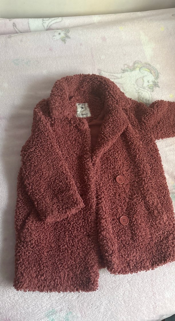 Gül kurusu renkli, düğmeli ve kruvaze yakalı, yumuşak peluş kumaştan yapılmış uzun kollu kabanı. Rahat ve normcore tarzıyla günlük kullanıma uygun.