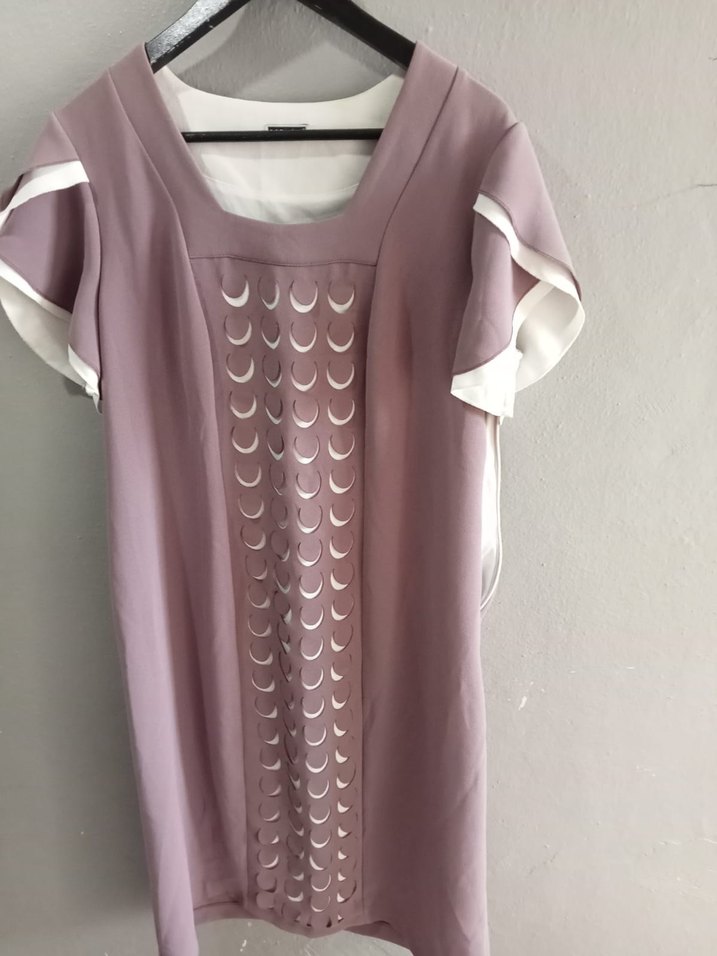 Gül kurusu renkte, kısa kollu, tekne yaka ve önünde piliseli detaylara sahip elbisedir. Düzenli kesim ve minimal baskılı tasarıma sahiptir.