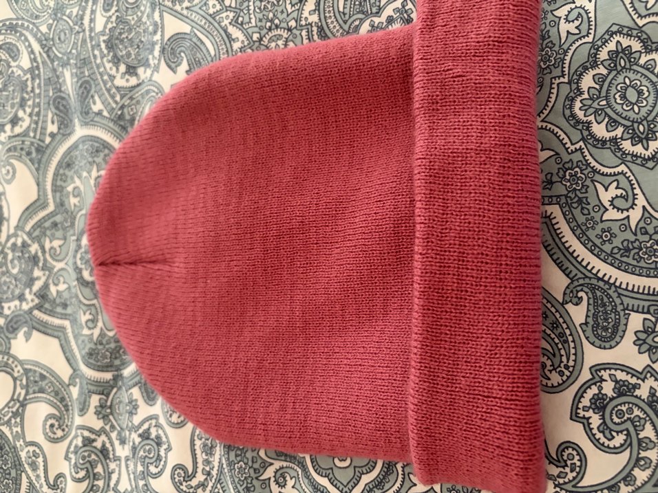 Yumuşak tekstilden örülmüş, parlak gül kurusu kadın bere. Rahat ve bohem tarzda, retro ve hippie görünüme uygundur.
