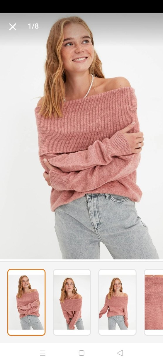 Trendyol Milla hiç kullanılmadı Gül Kurusu Karmen yaka bol salaş model M beden