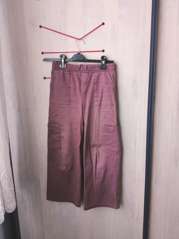 gül kurusu renk, salaş kesim, pamuk kumaş midi boy pantolon, yan cepleriyle günlük rahat ve şık sokak stili sunar.