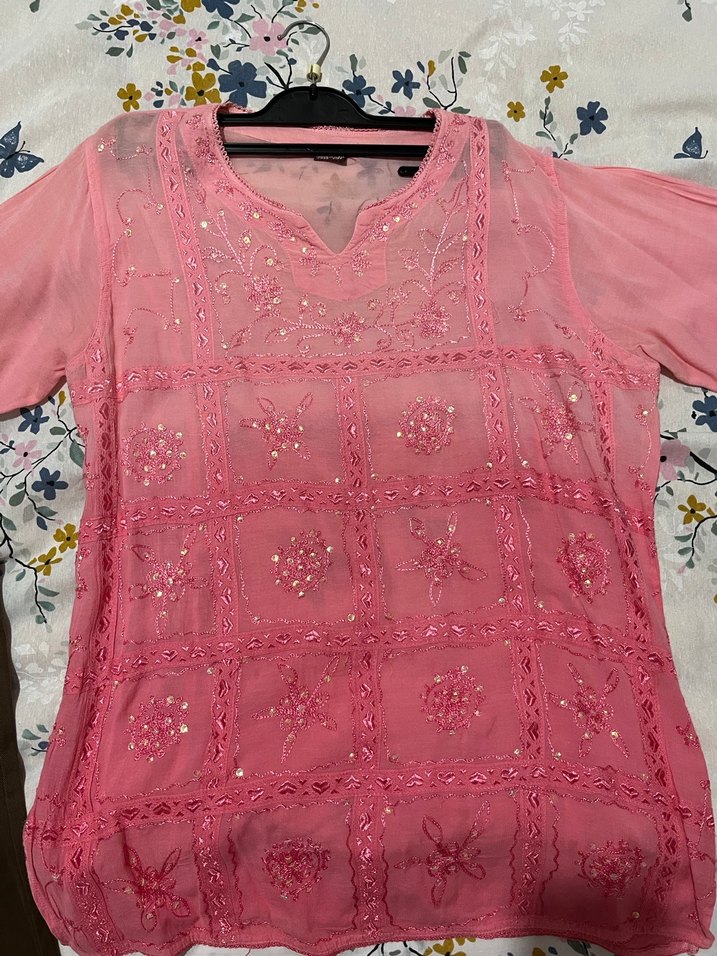 Gül kurusu renginde, nakışlı dantel detaylı, kısa kollu, bol kesim bohem tarzda V yaka midi uzunlukta bluz.