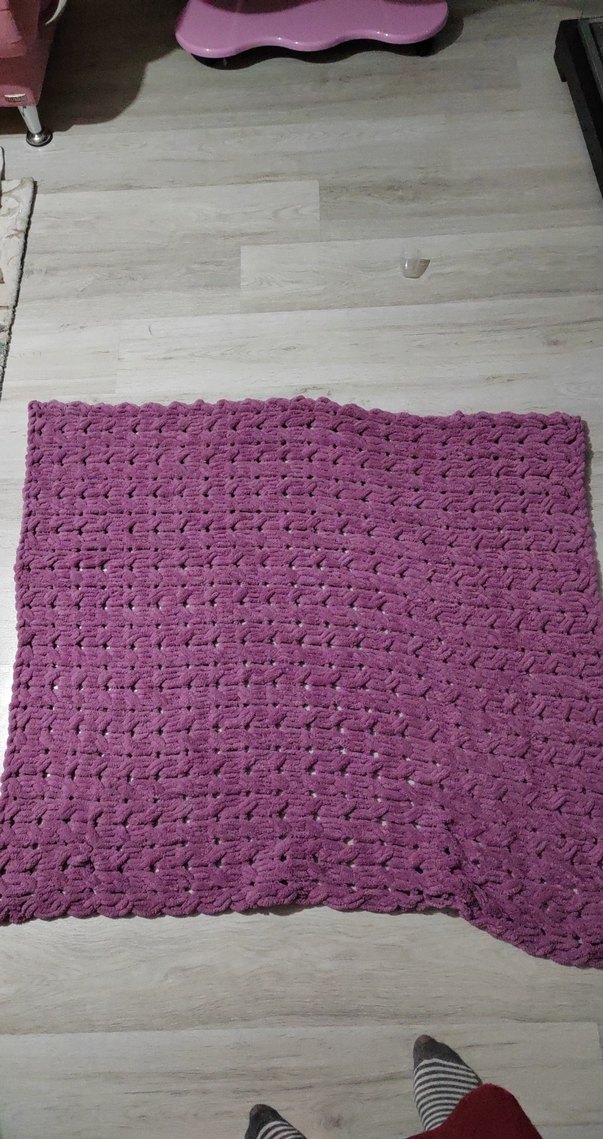 Yumuşak dokulu, desensiz mor örgü çocuk battaniyesi, çocuklar için sıcaklık sağlar.