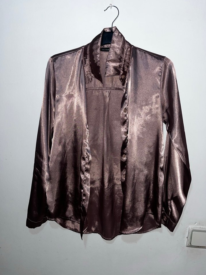 Gül Kurusu Saten Kadın Uzun Kollu Gömlek