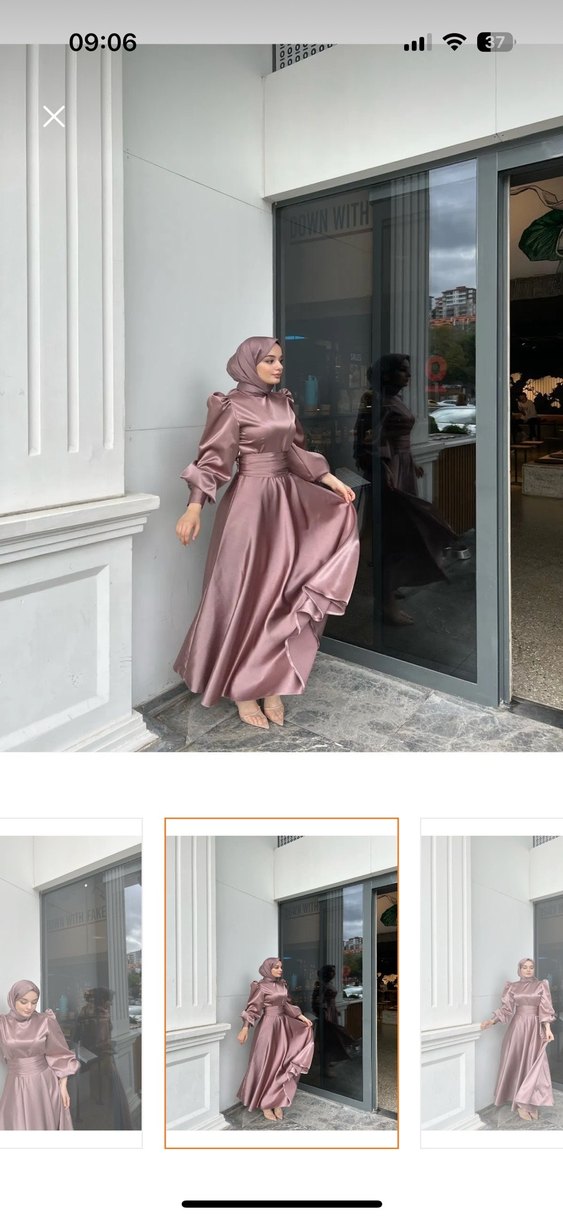 Çok şık beli kemerli balon kollu gül kurusu rengi tesettür abiye m bedene uygun 1 kere kullandım aynı renk şalıyla birlikte göndereceğim
