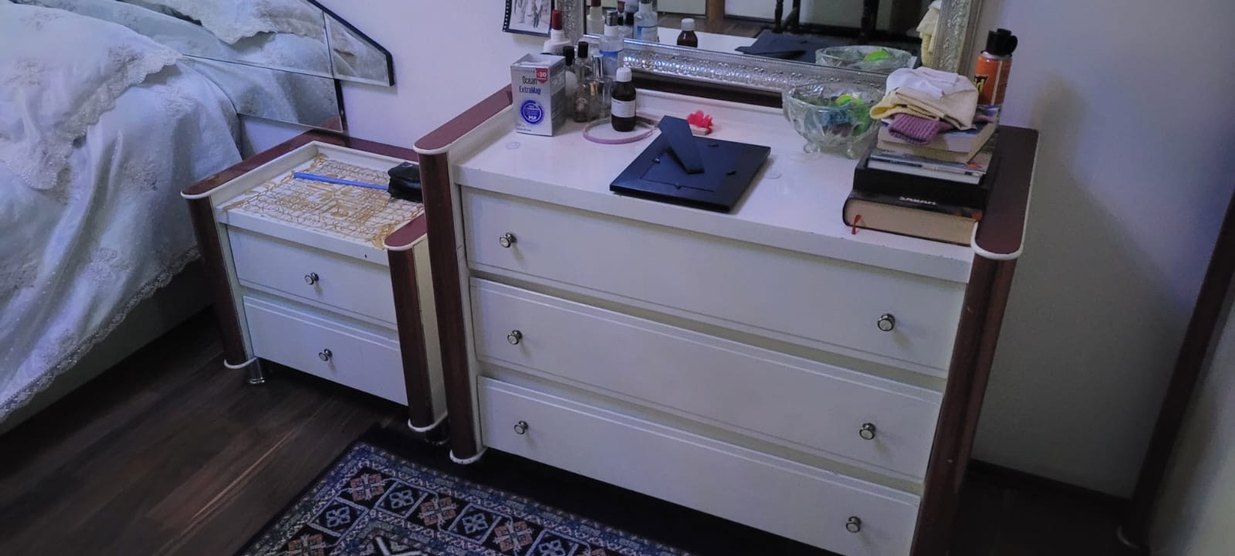 Bir adet sürgülü kapaklı gardrop, bir adet şifonyer&makyaj masası dahildir. Bursa içi seti gelip görebilir. Pazarlığa açıktır.