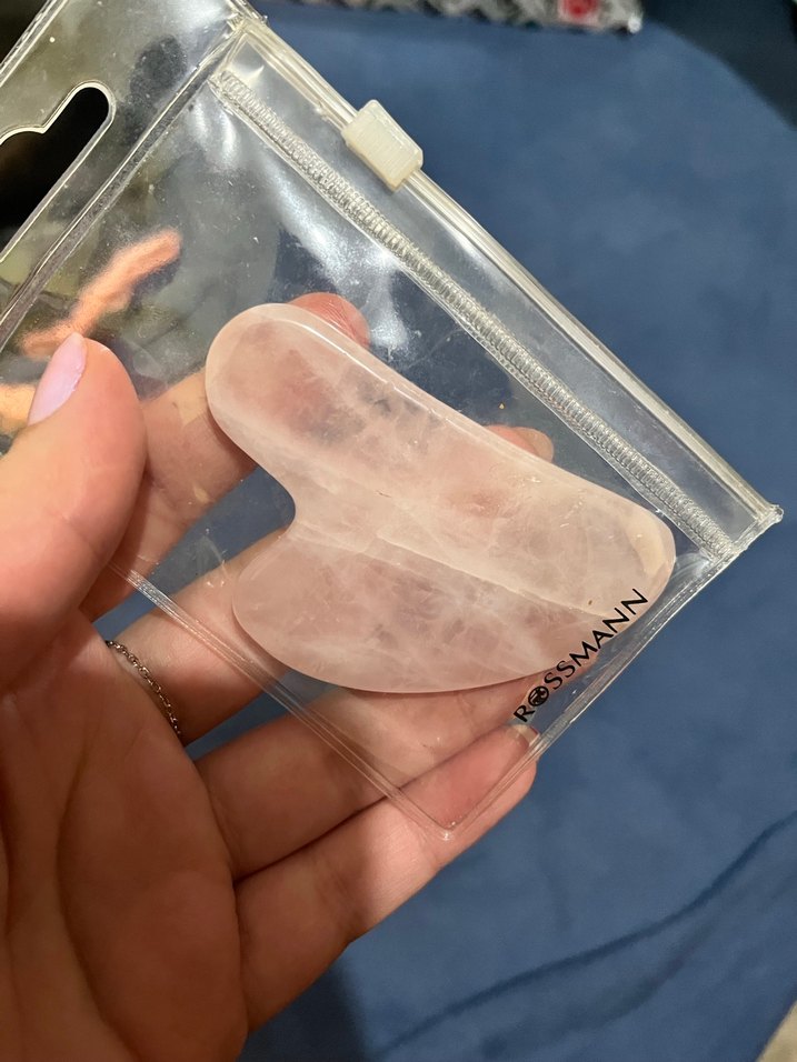 Şeffaf poşette gül kuvarsı yüz masaj taşları, cilt bakımında rahatlatıcı kullanım için. Kan dolaşımını artırmaya yardımcıdır. Bi iki defa kullanıldı ben beceremedim