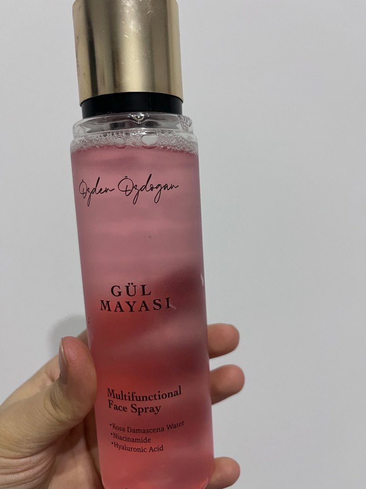 Gül Mayası çok fonksiyonlu yüz spreyi, gül suyu, niasinamid ve hyaluronik asit içerir, cildi nemlendirir ve ferahlatır.