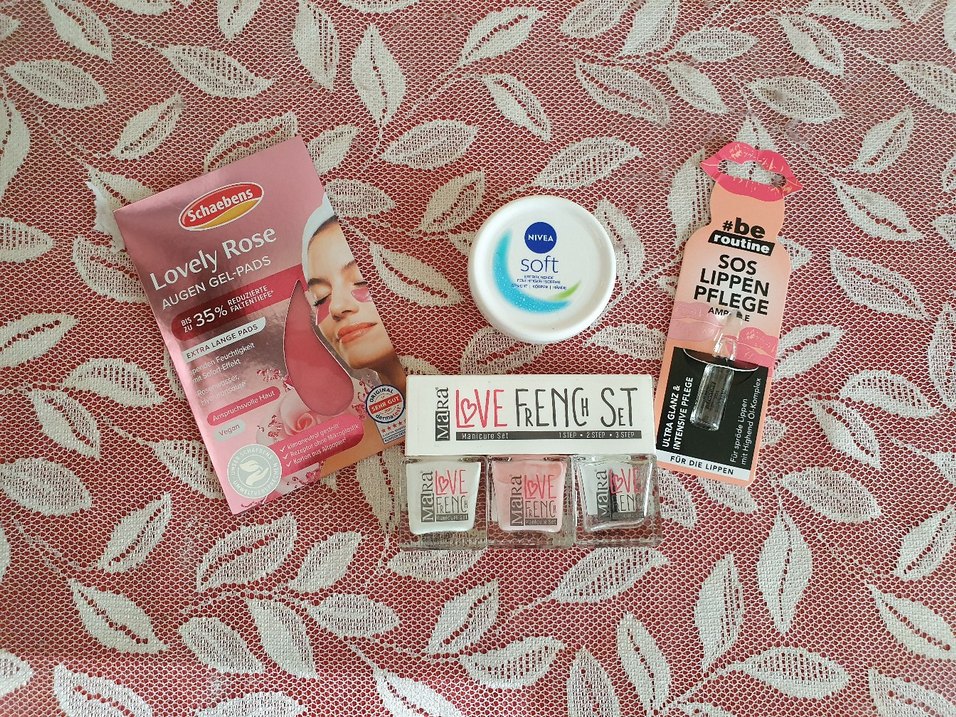 Gül özlü dudak bakım pedleri, Nivea Soft nemlendirici krem ve Maria Love French tırnak cilası seti içerir. Dudak ve tırnak bakımı için uygundur.