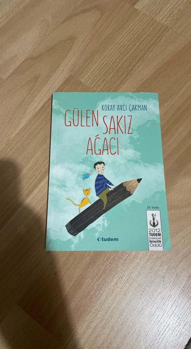 Koray Avcı Çakman'ın 2012 Tudem yayınlı 'Gülen Sakız Ağacı' adlı çocuk kitabı. Kapakta çocuk ve kedi figürü yer alıyor.
