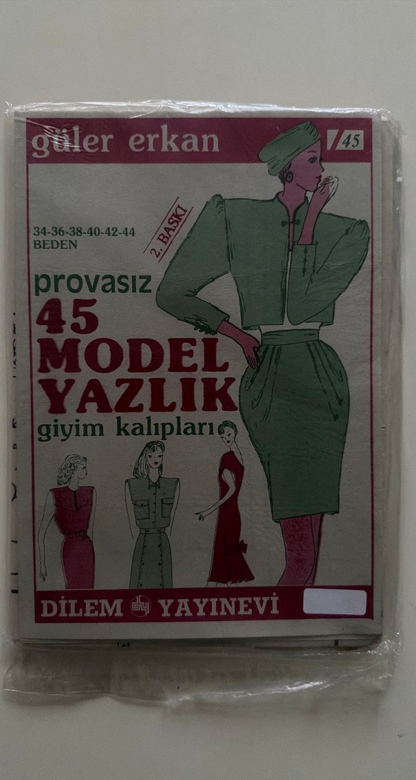 Güler Erkan'ın 34-44 beden arası 45 yazlık giyim kalıbını içeren provasız model dergisi. Farklı giysiler için desenler bulunur.