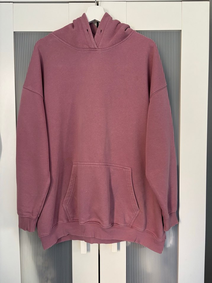 Gül kurusu renkte, rahat kesim, kapüşonlu ve uzun kollu kadın sweatshirt. Normal boyda ve yumuşak dokulu, günlük kullanım için uygundur.