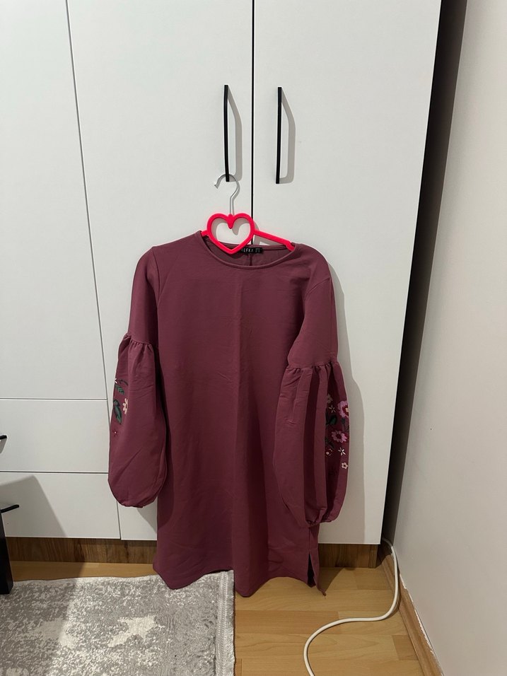 Gülkurusu Nakışlı Uzun Kollu Salaş Tunik