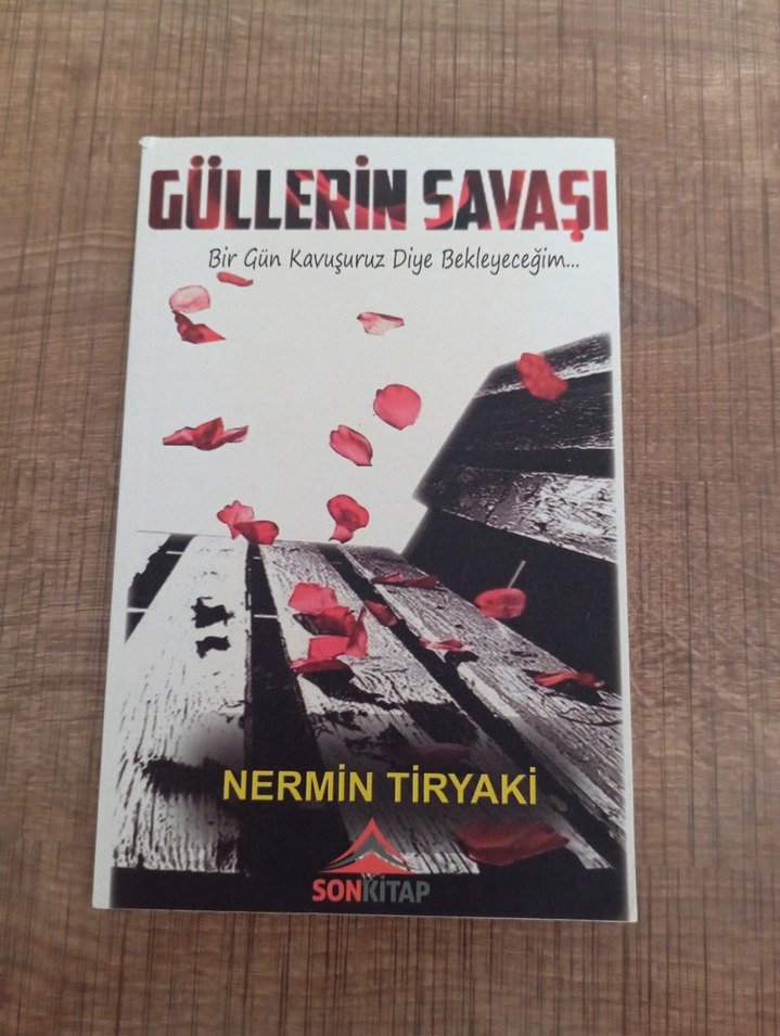Nermin Tiryaki'nin Güllerin Savaşı adlı romanı, umut ve bekleyiş temasını işliyor. Kapakta sembolik gül yaprakları bulunuyor.