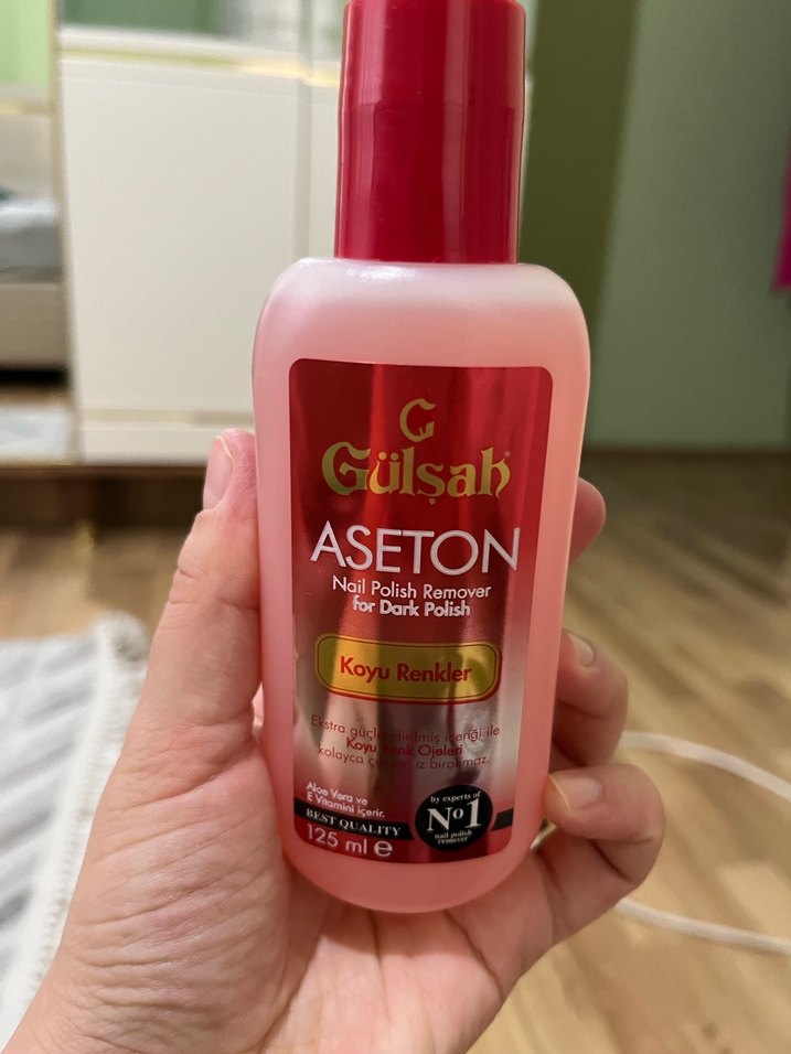 Gülsah markasına ait koyu renk oje için özel olarak üretilmiş 125 ml aseton.