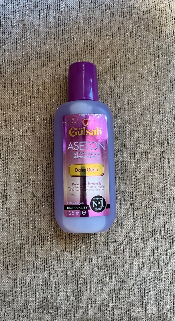 Vitamin E destekli, daha güçlü formüle sahip Gülsak aseton, 125 ml şişede sunulur. En iyi kalite ile etkili tırnak cilası temizliği sağlar. Yeni alındı, hiç kullanılmadı