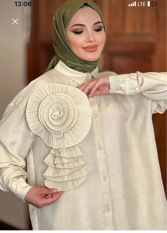 Gülseli tesettür gül detaylı tunik gömlek