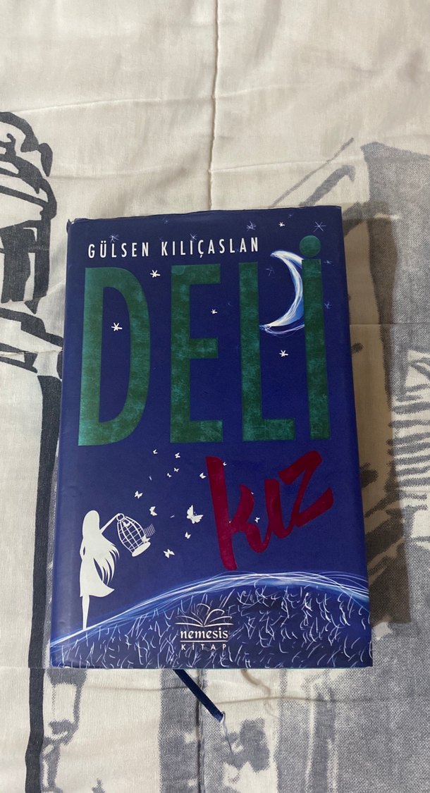Gülşen Kılıçaslan'ın "Deli Kız" romanı, gece gökyüzü temalı kapağı ve kuş kafesi tutan kız figürüyle Nemesis yayınevinden.