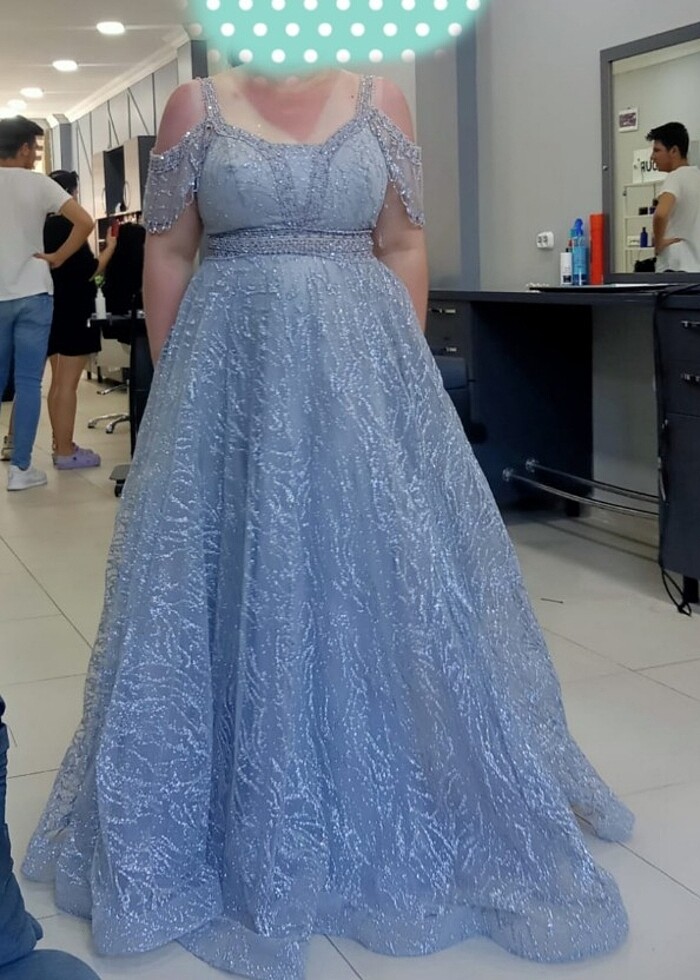 Gümüş renk abiye sünnet düğününde bir kere giyildi gümüş renk ful simli 46 bedendir marka temsilidir yanında adım tarlatanıda verilecektir