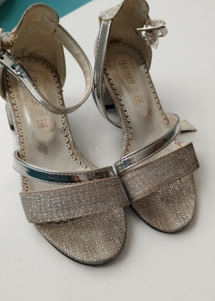Gümüş 28 numara az kullanılmış abiye topuklu ayakkabı